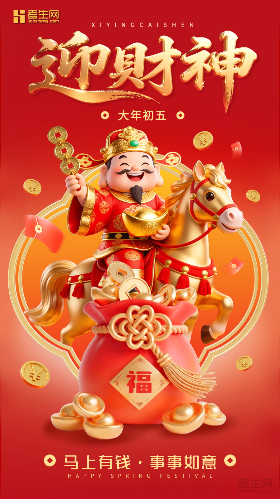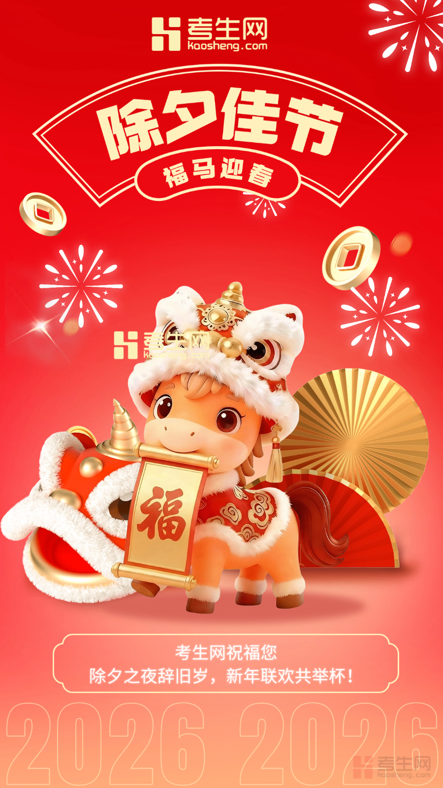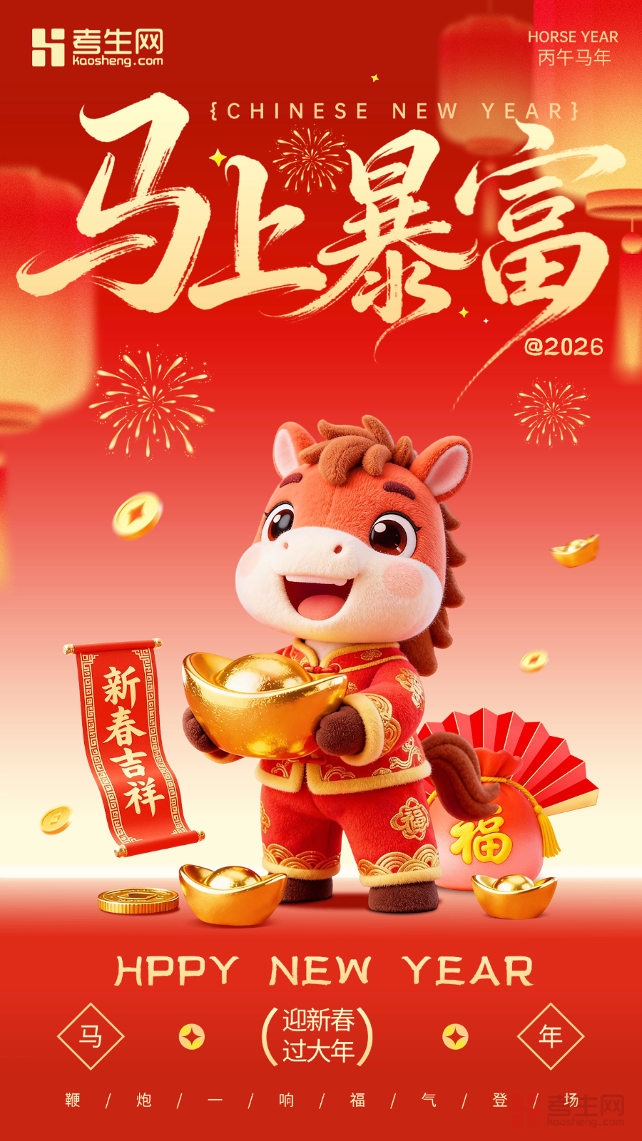 主题:贴合 2026 马年新春氛围,融合考生网品牌元素,喜庆大气