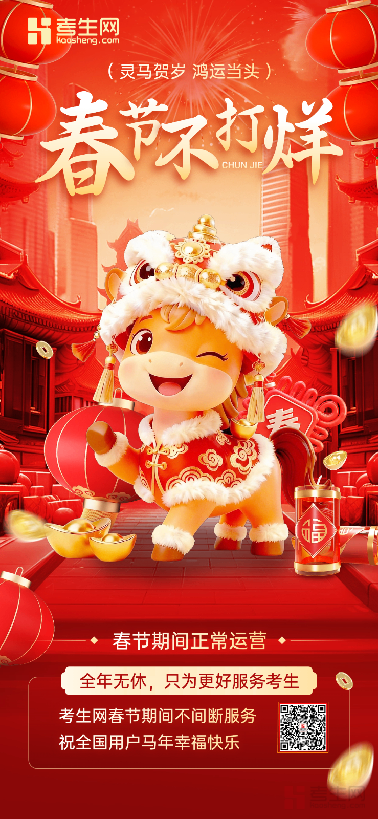 本系列海报仅限考生网内部及官方宣传渠道使用,可直接下载套用,助力春节期间品牌宣传高效、规范、统一。